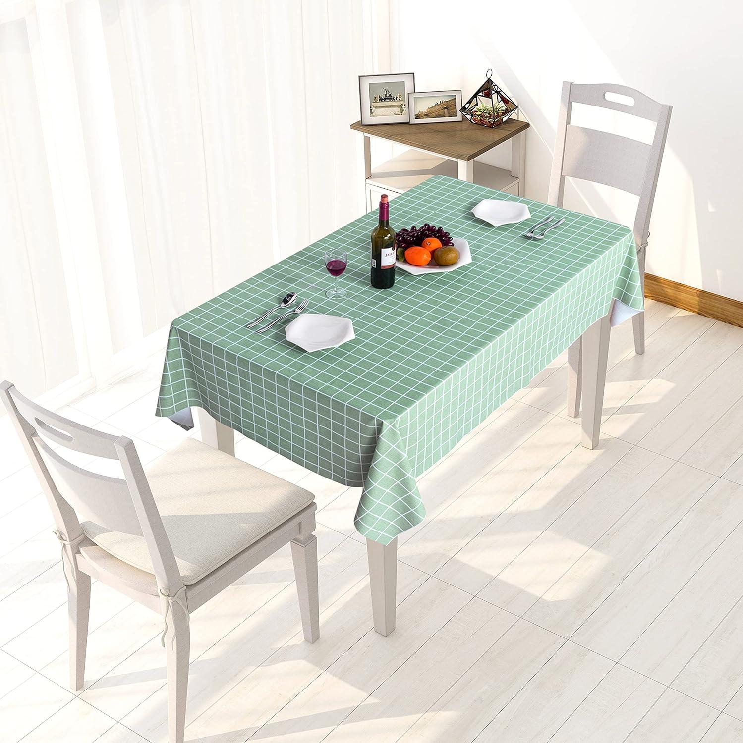 sancua Checkered Vinyl Rectangle Tablecloth 54 x 78 Inch – 100% Waterproof Oil Proof Spill Proof PVC Plaid Table Cloth, Wipe Clean Buffalo Table Cover for Dining Table Buffet Parties, Black and White(Green Checkered)